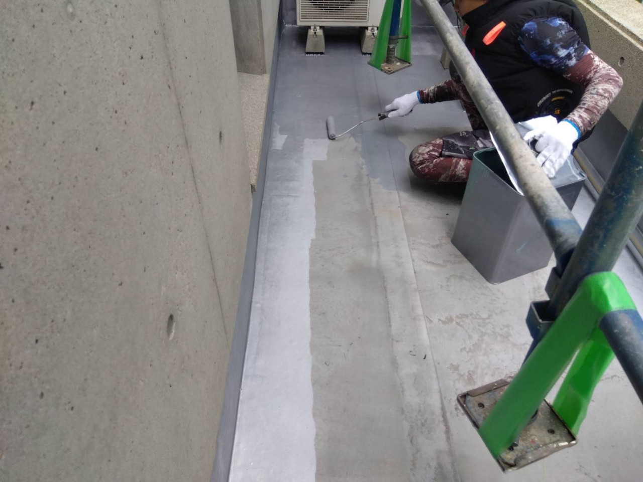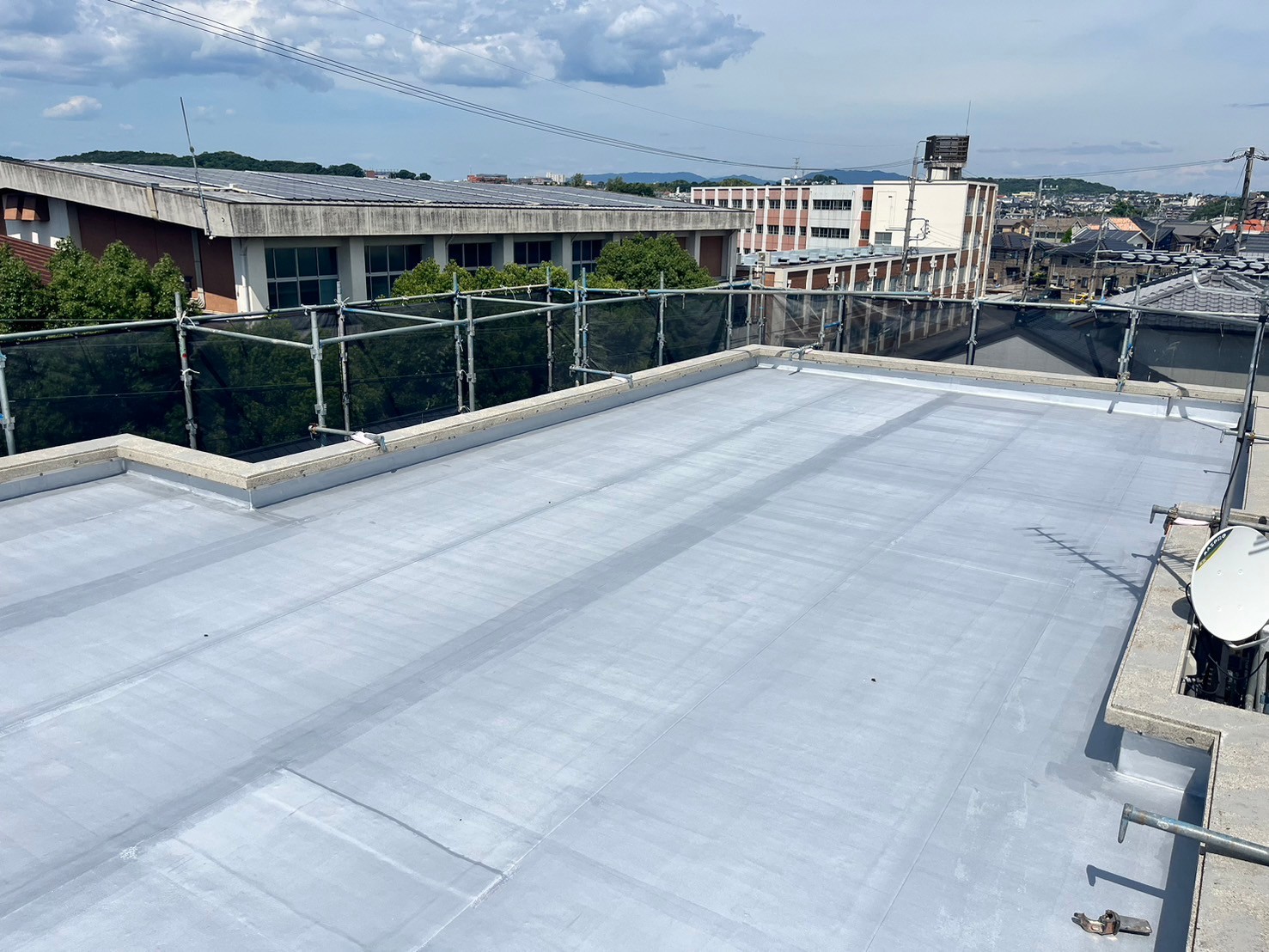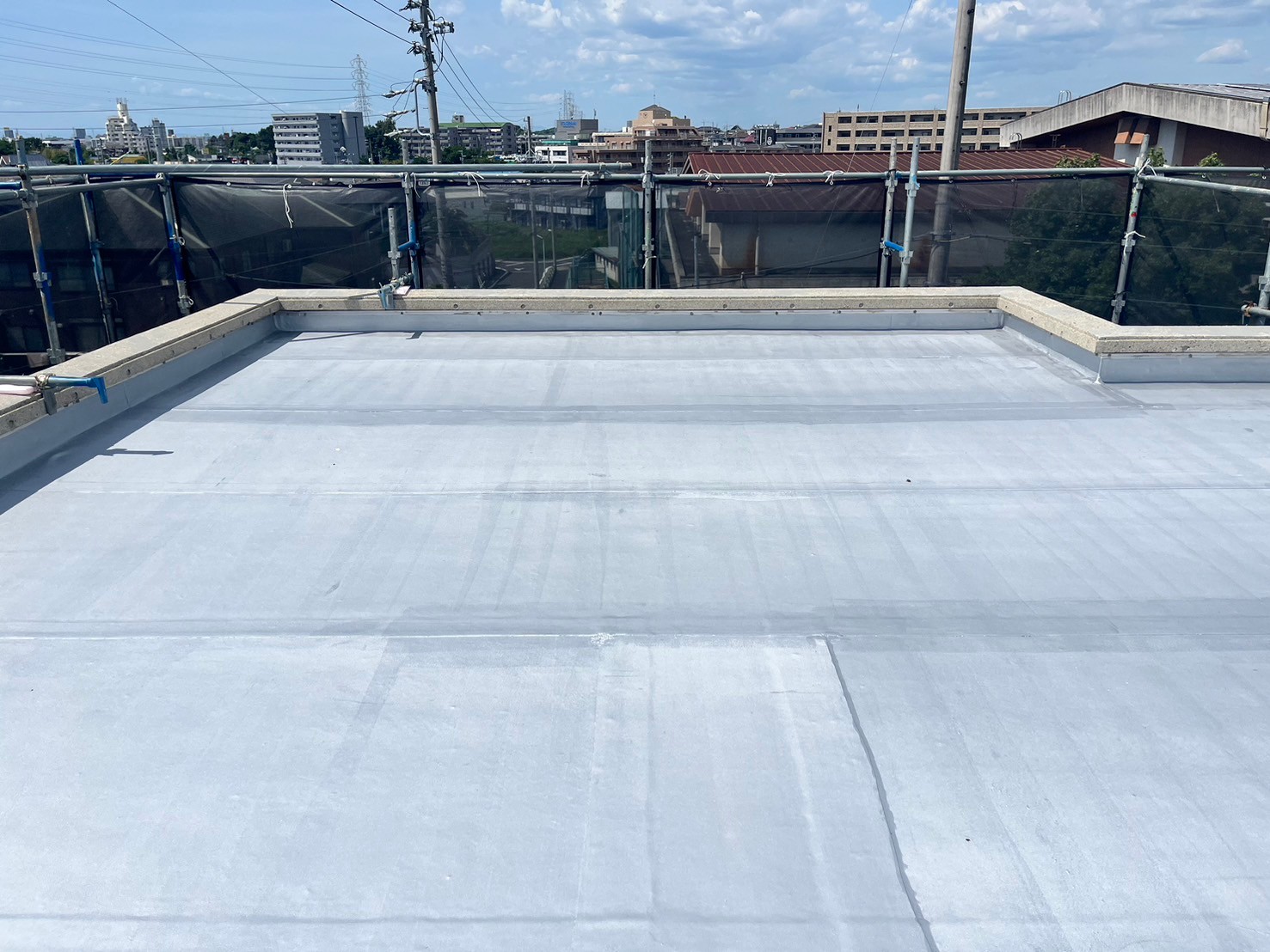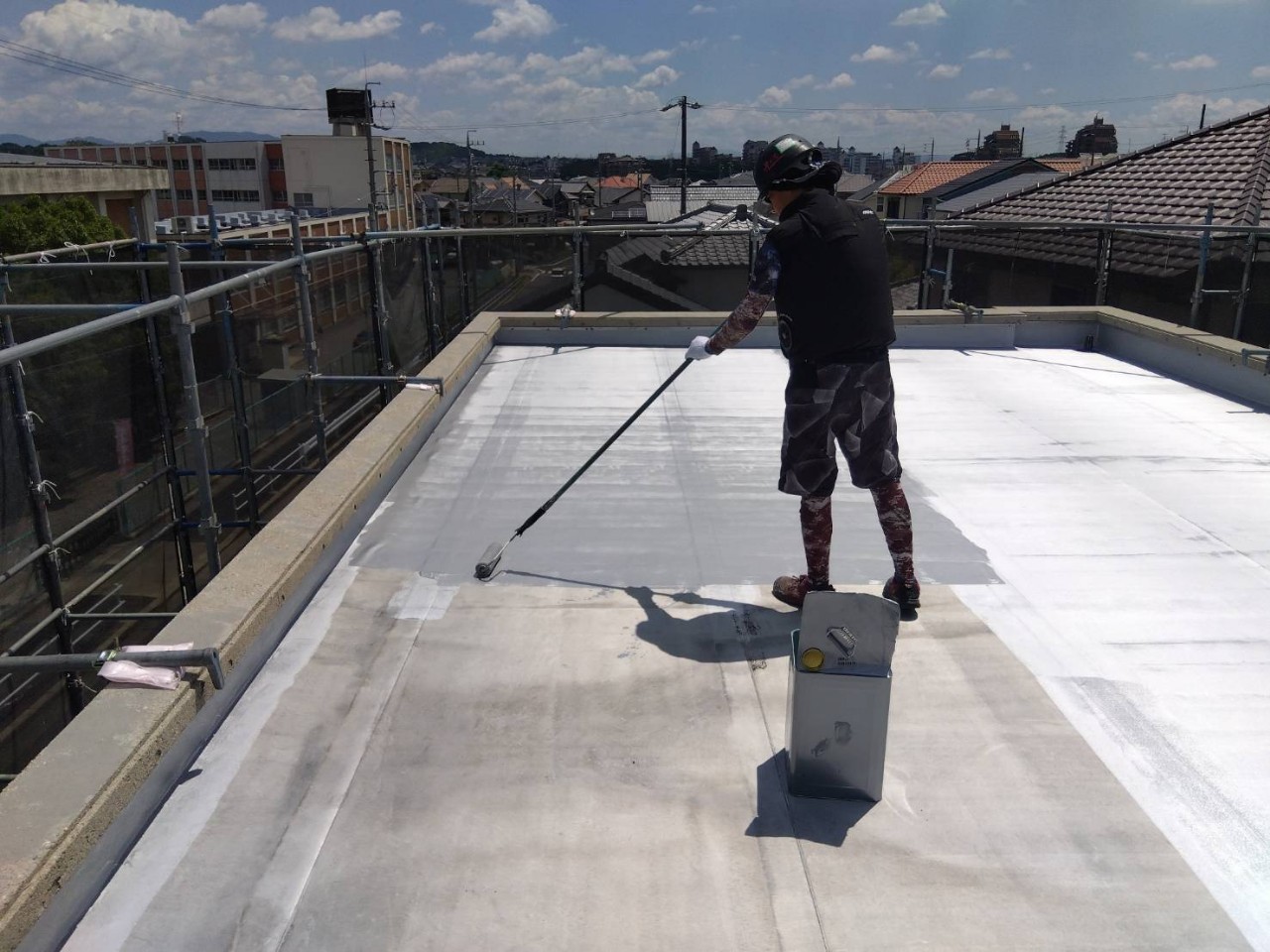 ・屋根既設ゴムシートにトップコート塗替え(保護塗料)