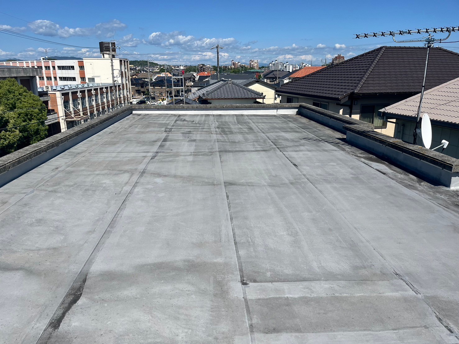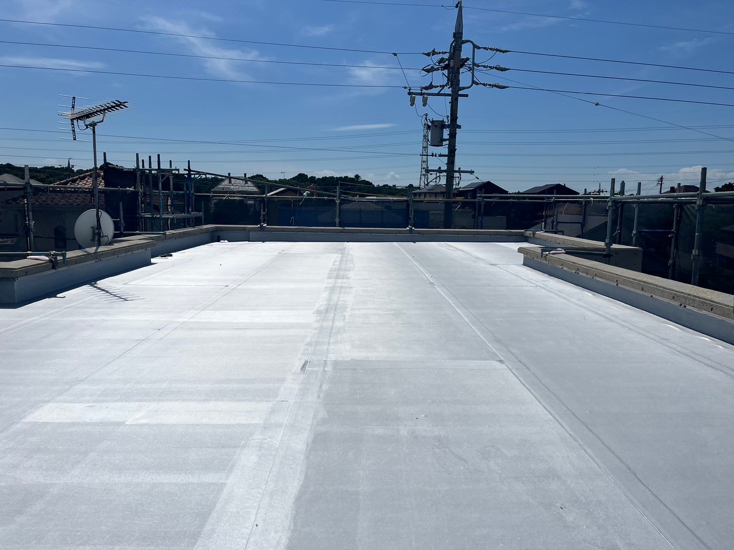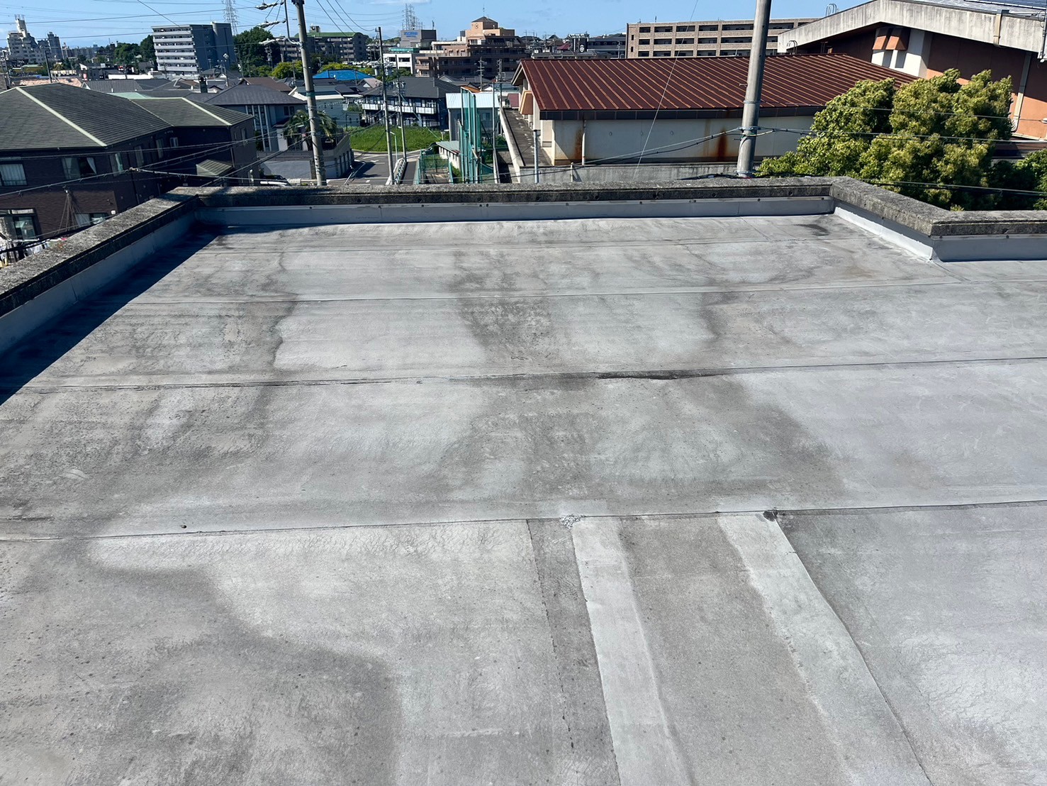 ・屋根既設ゴムシートにトップコート塗替え(保護塗料)
