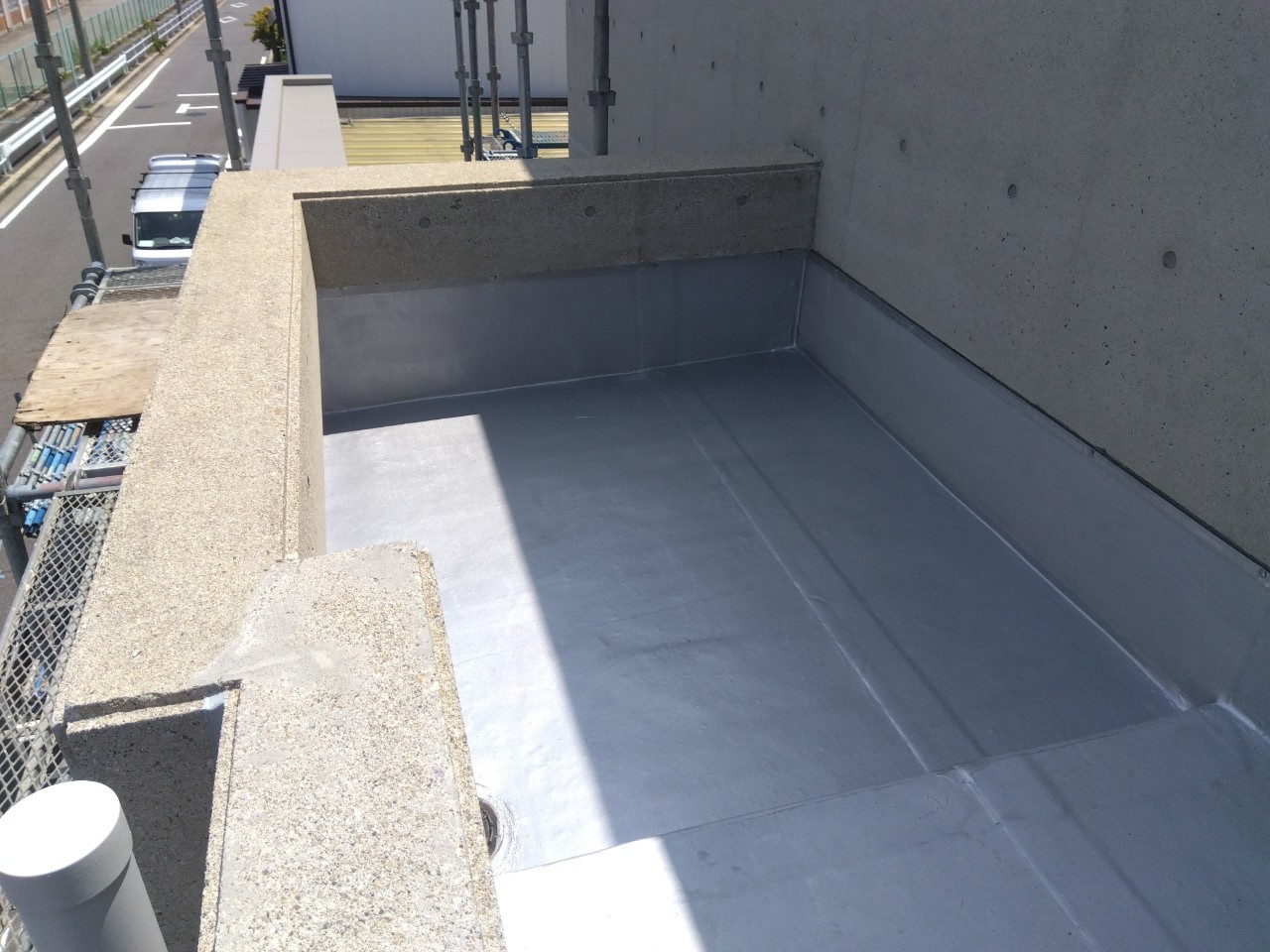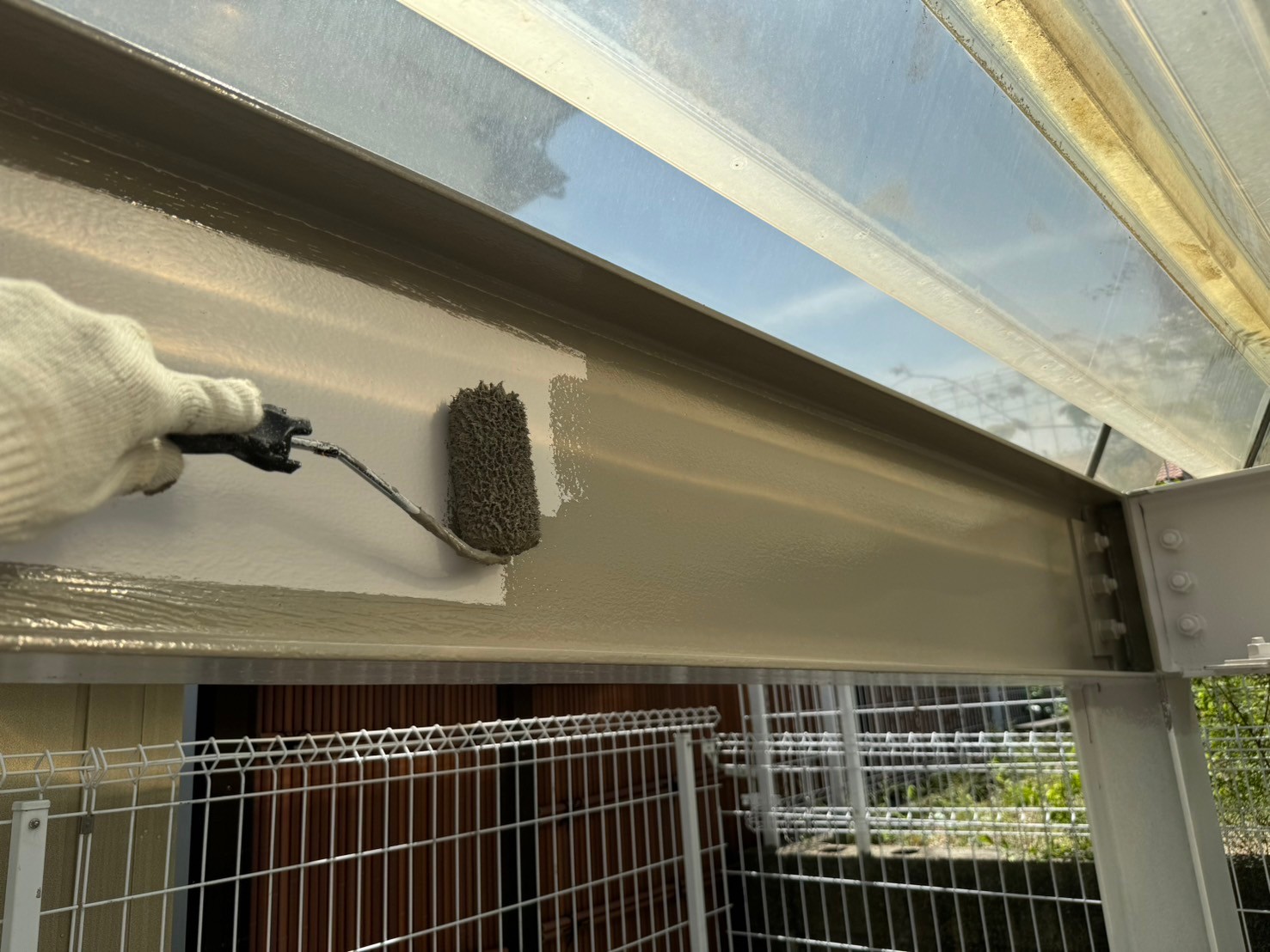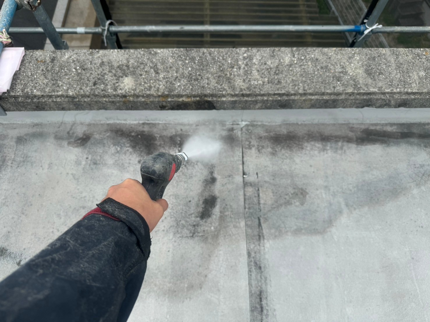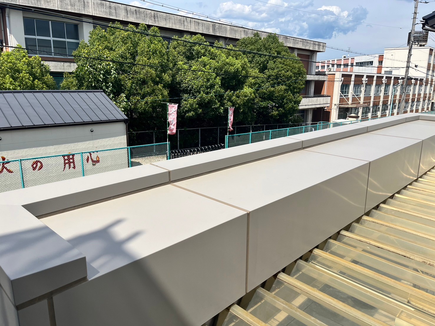 ・屋根既設ゴムシートにトップコート塗替え(保護塗料)